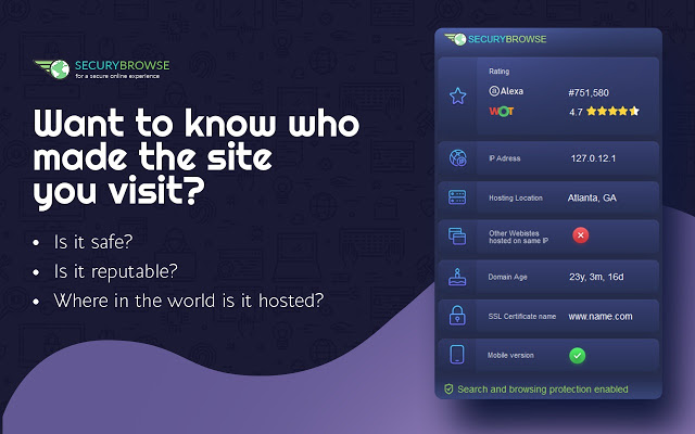 SecuryBrowse helps users stay safe online by alerting against dangerous sites or keywords even ahead of the time of click (TOC). The alerts not only protect from malicious actors but also educate users about the potential harm.
